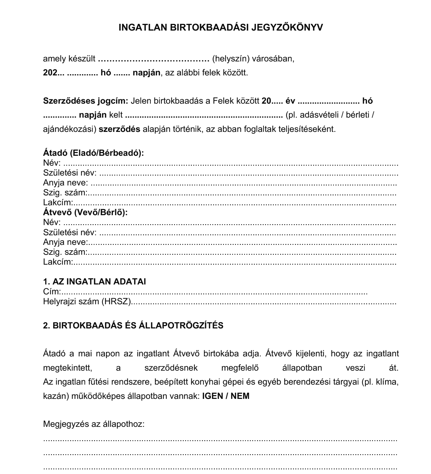 Birtokbaadási jegyzőkönyv minta 2026 – Ingyenes letölthető Word és PDF + birtokbaadás menete