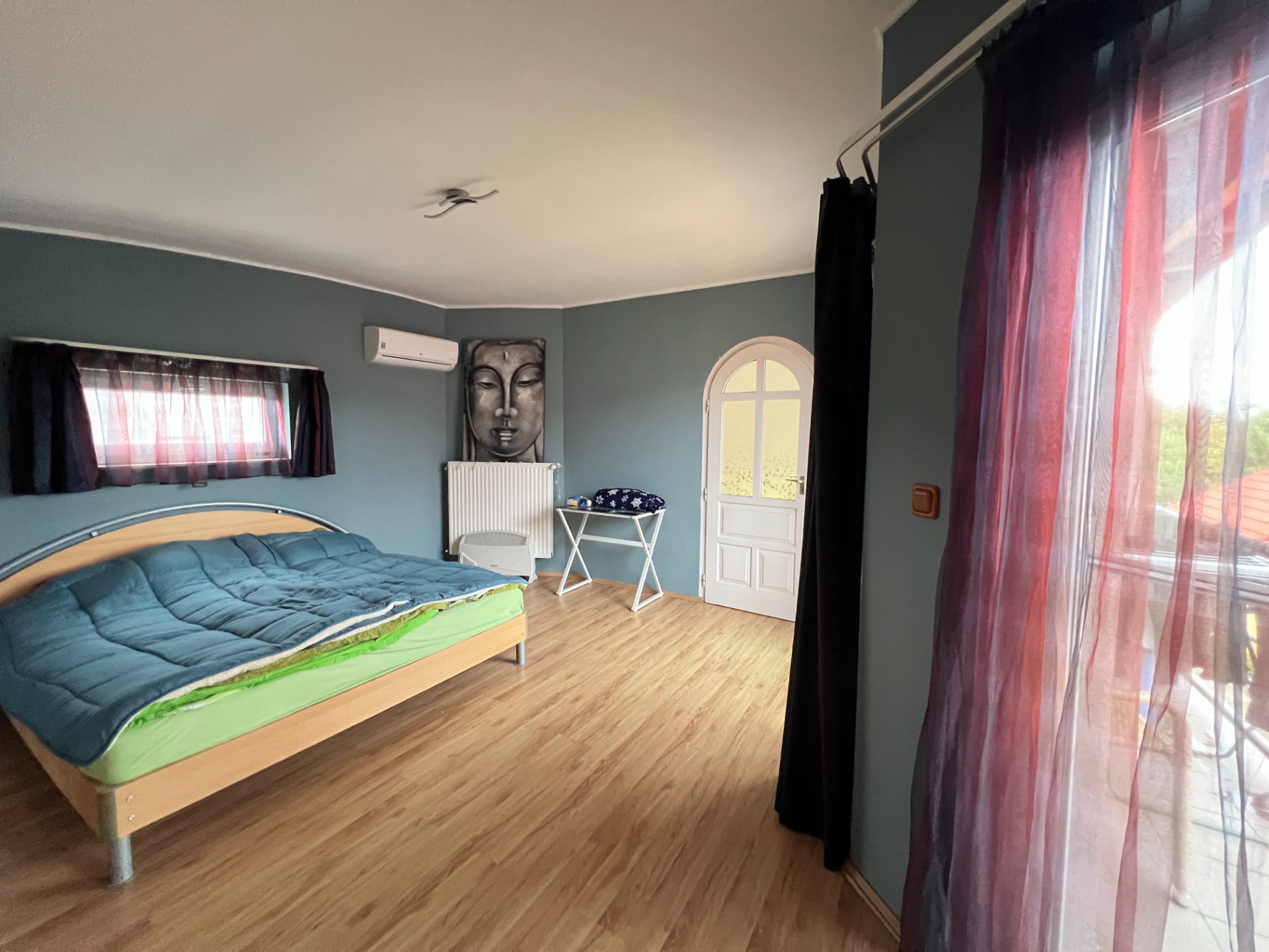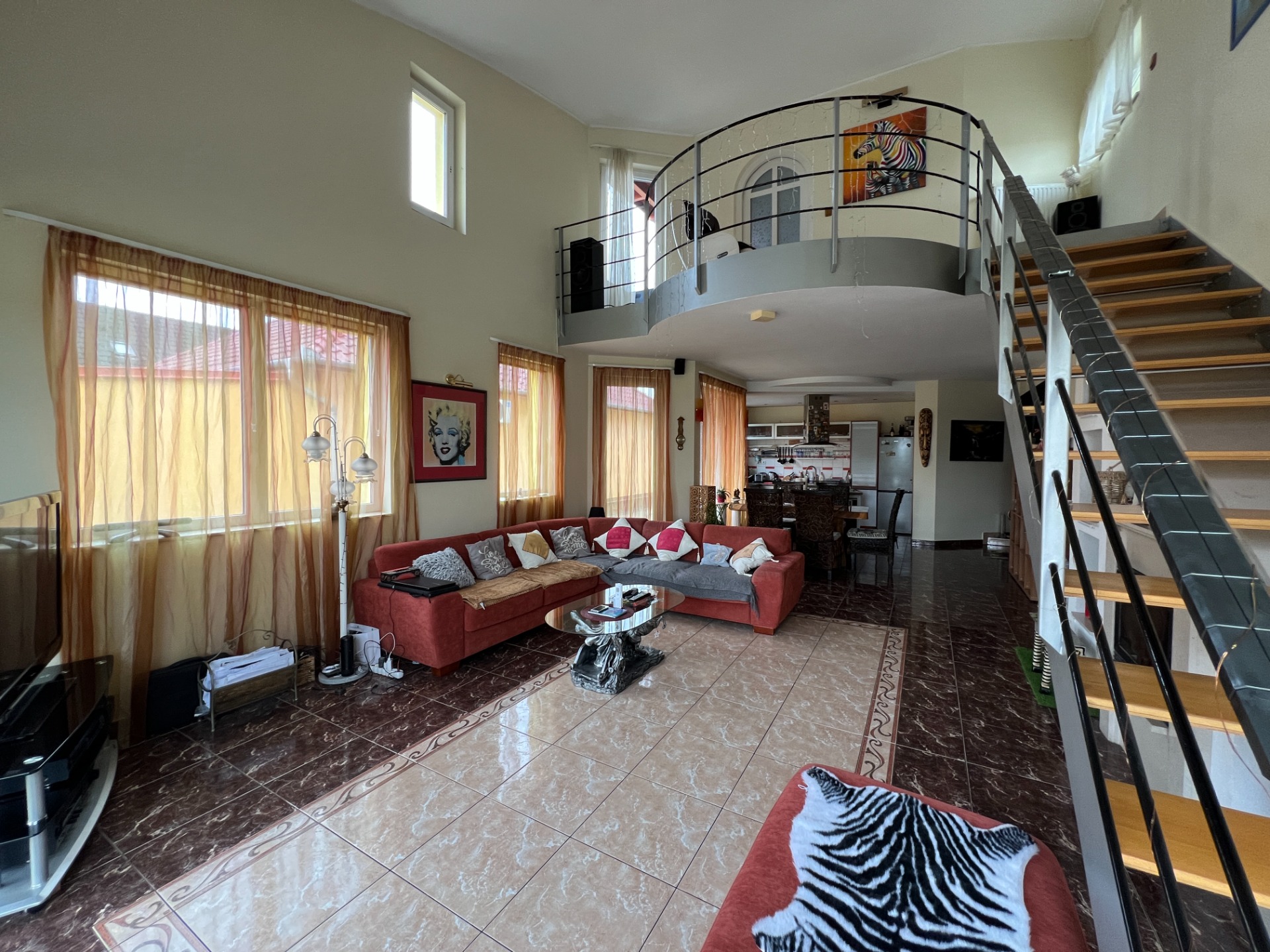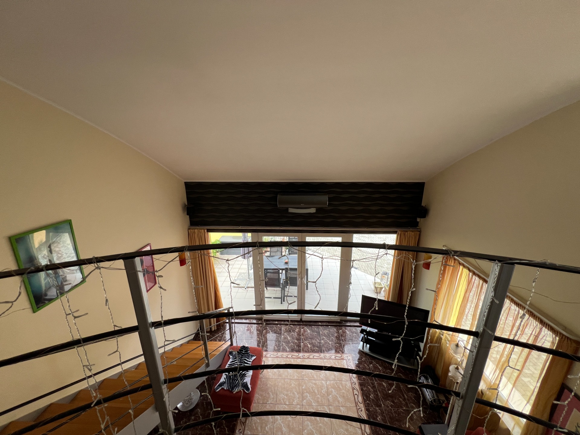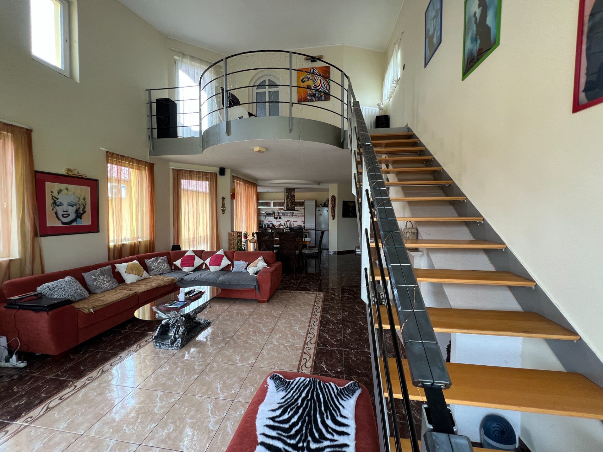 -- Felső szint (48,5 m²): galériás olvasósarok, külön szoba saját fürdővel és WC-vel, erkély.