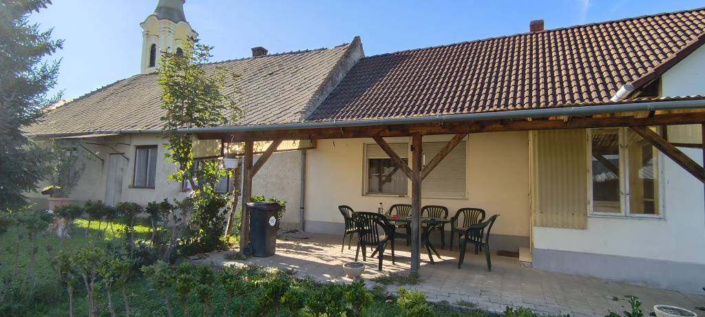 A hagyományos építésű vályogház beépített tornáccal rendelkezik.